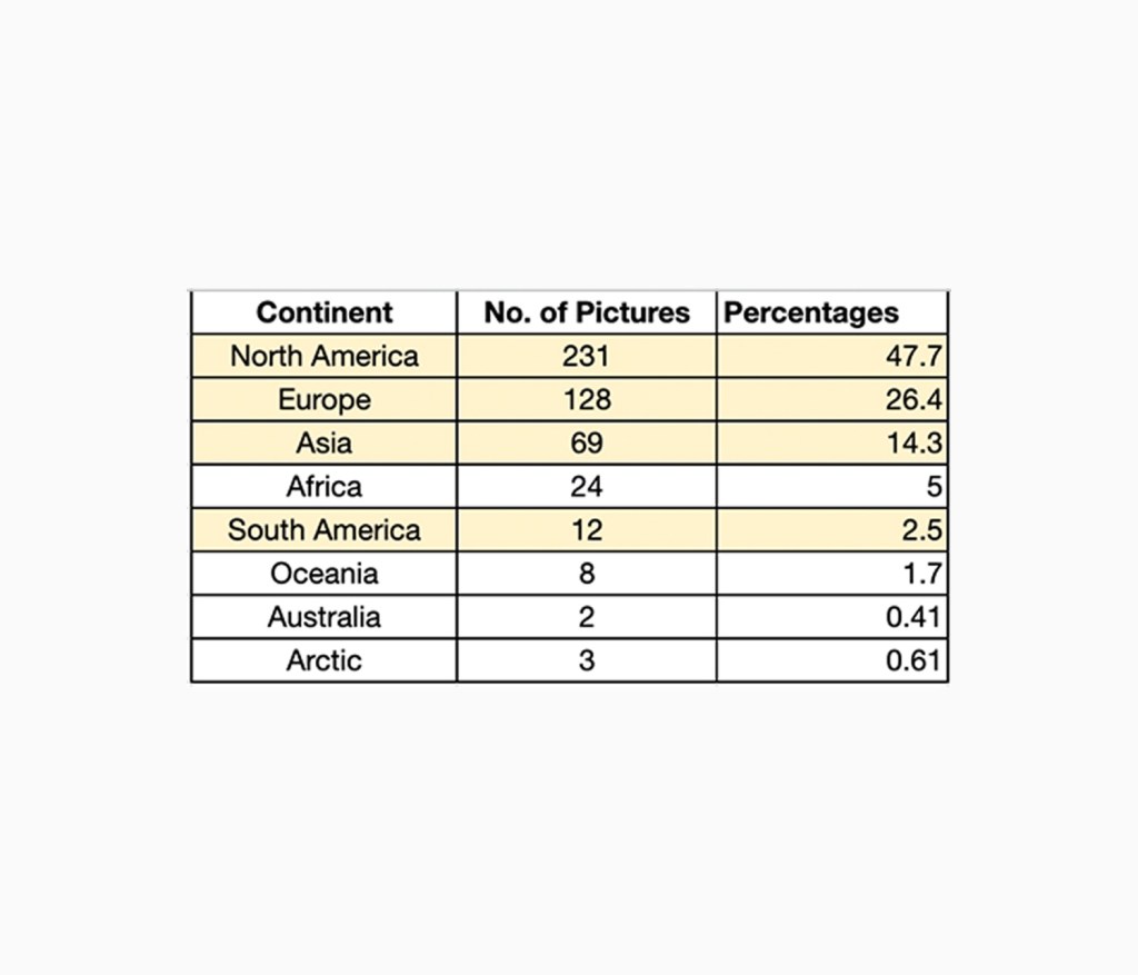75% of the images were shot in North America or Europe.