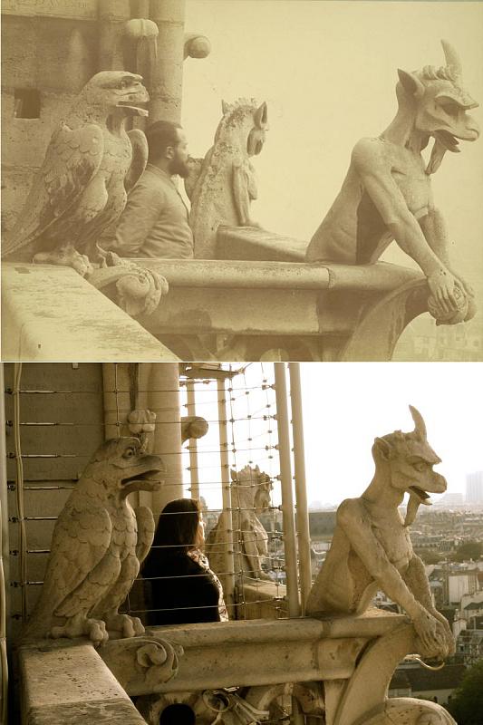 With time and attention, photographs can be viewed in aggregate, the future historian can pull from concurrent sources. Our contemporary photographic collecting tools, as in the case of Flickr’s Galleries and Albums, which allow curation of others people’s photographs, can come to resemble a sort of photomontage. Rosalind Krauss, writing on the photomontages of Hannah Höch and other Dadaists in The Optical Unconscious, argues that the medium forces a dialogue between images, creating unexpected connections and breaking the linearity of traditional visual narratives thus opening space for political critique. The Notre Dame gallery disrupts the throughline of the ‘official’ imagery of the event, creating a space for discourse of other elements besides the central action (e.g. gender, capitalism, urbanism).