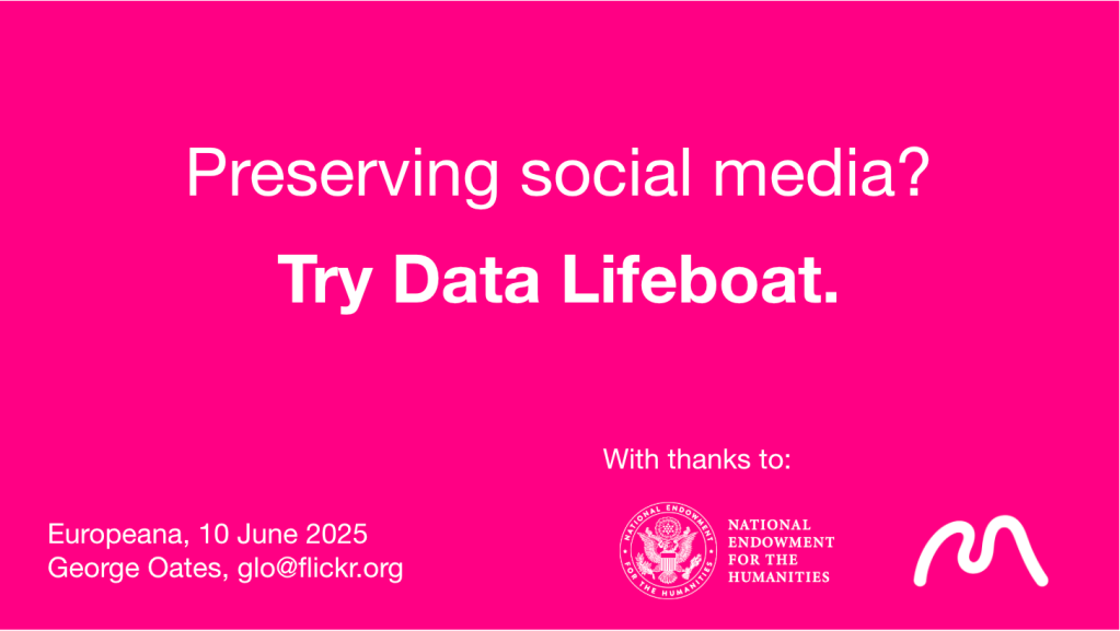 Flickr turned 21 years old in February 2025. It’s a grandma of the web, and has grown into a collection of tens of billions of images; a unique representation of our shared histories over the last 20+ years. The Flickr Foundation was established in 2022 to keep Flickr pictures visible for 100 years (whether they’re on Flickr or not). It is working on a decentralization solution called Data Lifeboat, a self-contained, well-designed archival unit containing a selected sliver of Flickr pictures and their metadata. Join this session to see an overview of the prototyping and user research to date!