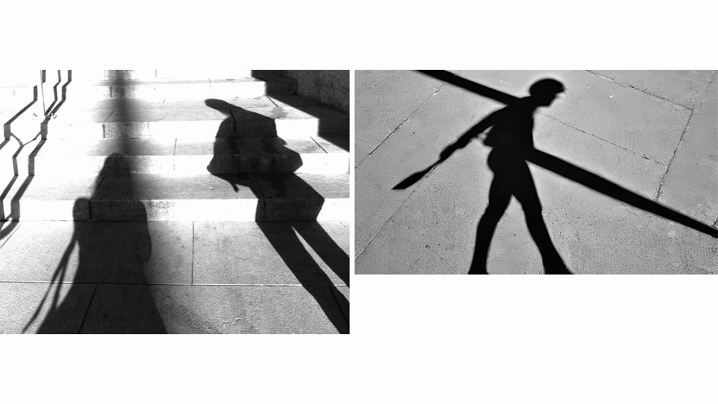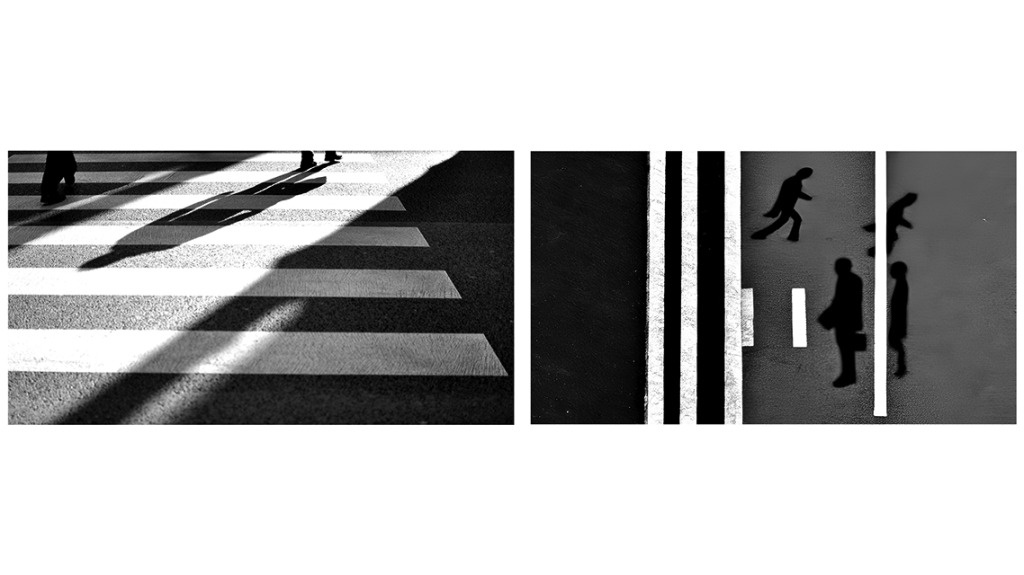 In the images accompanying this text, I’ve paired images created in Stable Diffusion 1.6 for the prompt “Flickr.com street shadows.” They’re paired with images from actual Flickr members. I did not train AI on these photos, nor did I reference the originals in my prompts. But by pairing the two, we can see the ways that the original Flickr photos might have formed the hazy structures of those generated by Stable Diffusion.