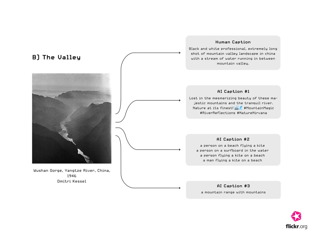 - In the platforms that generated other styles of captions (not for social media), we found the depth and accuracy of the description was really limited, for example, “a mountain range with mountains.”