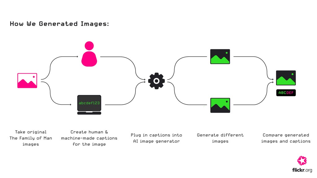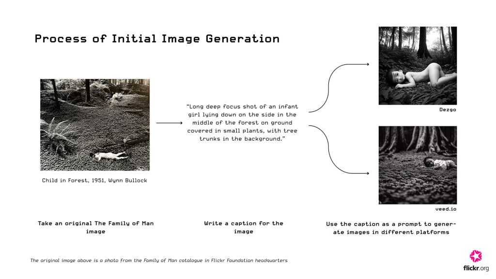 Ever since we created our Version 2 of A Flickr of Humanity, we’ve been brainstorming different ways to develop this project at the Flickr Foundation headquarters. Suddenly, we came across the question: what would happen if we used AI image generators to recreate The Family of Man?